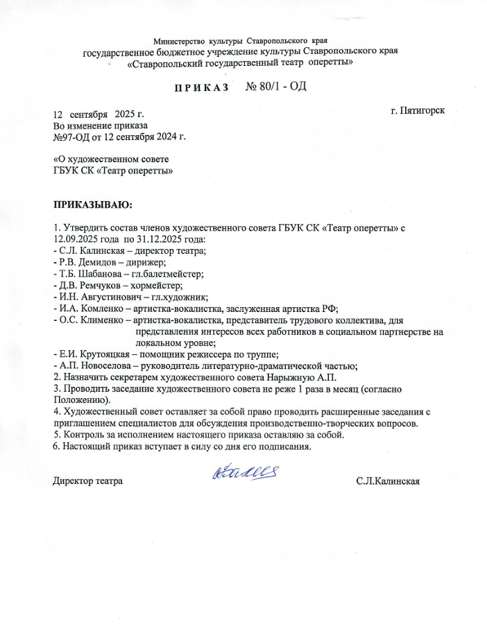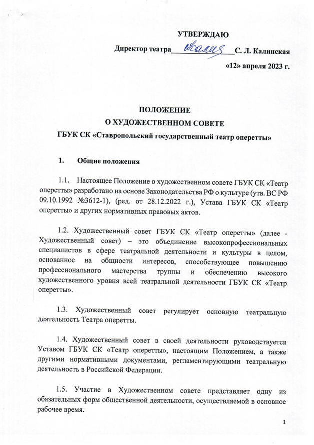 Приказ и Положение о художественном совете