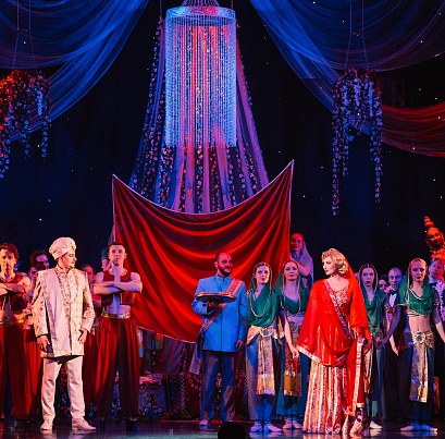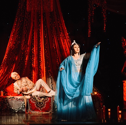 Музыкальный материал спектакля — это настоящий коктейль из пряных завораживающих мелодий: романтические арии и каскадные дуэты, массовые ансамбли и увлекательный балетный дивертисмент. Музыка сладка как аппетитное восточное лакомство, она уносит мысли в далёкие тёплые страны.